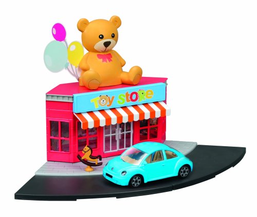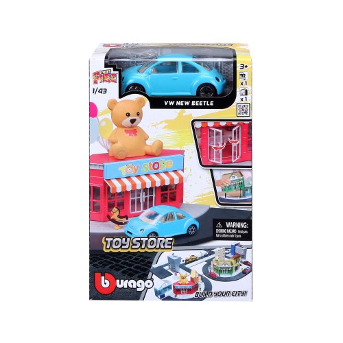 Hračkířství obsahuje kromě plastové budovy s pohyblivými dveřmi také pouliční a chodníkový komponent a různé doplňky.