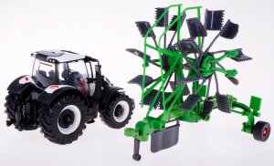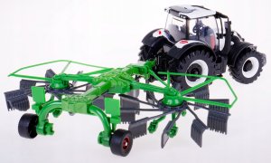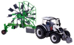 Kovový model traktor s vlečkou - BburagoKovový model traktor s vlečkou - Farm 10cm Tractor with Deluxe Trailer - Valtra N174 - Whirl Rake