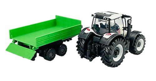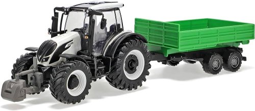 Kovové autíčko Bburago Farm 10cm Tractor with Trailer - Valtra N174 - Tipping Trailer