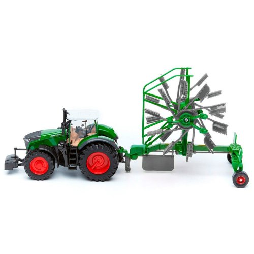 Kovový model traktor s vlečkou - Bburago 1:50 Farm Traktor Fendt 1050 Vario with Whirl Rake