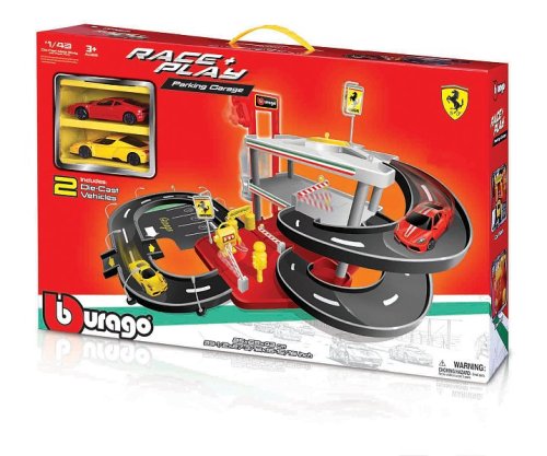 Bburago Ferrari – Parking Garage. Zažij svět plný akce s parádní parkovací garáží z kolekce Race + Play. Třípatrová garáž s výtahem, zvedákem aut, myčkou, pumpou a silnicí přináší dětem nekonečné hodiny zábavy. Součástí sady jsou dvě kovová autíčka Ferrari v měřítku 1:43, takže si malí řidiči mohou okamžitě začít hrát. Na každém patře čeká jiná dobrodružná zastávka – zaparkuj, projeď závory a spusť se po točité rampě zpět na silnici. Díky výtahu se auta snadno dostanou až na vrchol garáže. Garáž je vyrobena z odolného plastu. Autíčka jsou vyrobena z litého kovu. Baleno v krabičce. Nevhodné pro děti do 3 let. Rozměry složené garáže: 69 x 85 x 43 cm. Rozměry balení: 35,8 x 55,8 x 11,1 cm. Věk: 3+