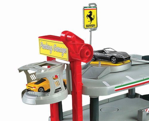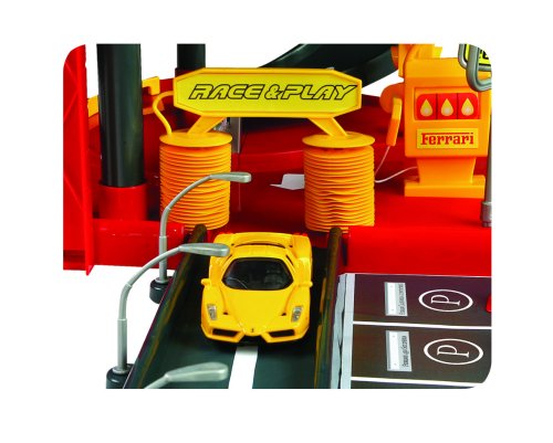 Třípatrová garáž Ferrari Kids s myčkou v sobě skrývá mnoho funkčních prvků! Vyvez autíčko výtahem až do nejvyššího patra garáže a spusť ho dolů po silnici! Natankuj, umyj auto v myččce a projeď zvedacími závorami!