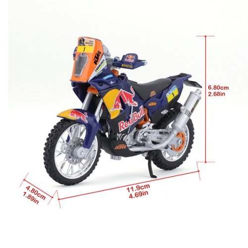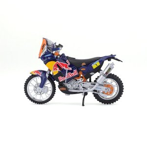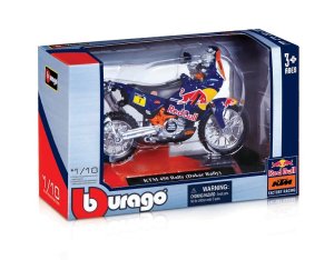 Modely motocyklů Bburago v měřítku1:18 z kolekce RED BULL KTM FACTORY RACING jsou sbírkou Rallye modelů s vysokým důrazem na přesnost detailů. Modely jsou vyrobeny z litého kovu s plastovými detaily. Baleno v krabičce. Nevhodné pro děti do 3 let. Rozměry balení: 10,8 x 17,1 x 7,1 cm. Věk: 3+