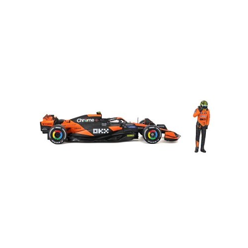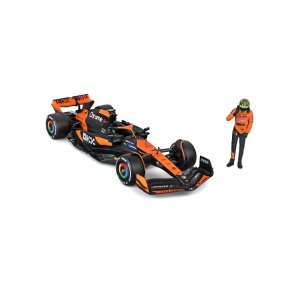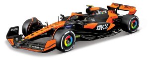 Bburago modely závodních vozů Formule 1 v měřítku 1:24 z kolekce RACE jsou sbírkou krásného designu s vysokým důrazem na přesnost detailů. Součástí modelů je plastová figurka jezdce F1 v mistrovské póze. Modely F1 ze stáje McLaren MCL38 (2024) jsou vyrobeny z litého kovu s plastovými detaily. Každý z modelů je v klasickém závodním designu a se závodním číslem. Baleno v krabičce. Nevhodné pro děti do 3 let. Rozměry balení: 12,7 x 28 x 12,7 cm. Věk: 14+