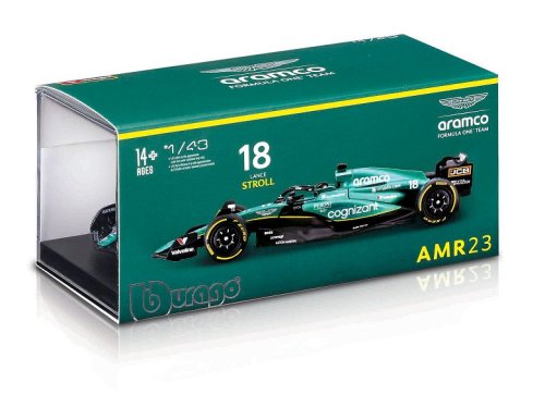 Bburago modely závodních vozů Formule 1 v měřítku1:43 z kolekce RACE jsou sbírkou krásného designu s vysokým důrazem na přesnost detailů. Formule ze stáje Aston Martin Aramco Congnizant AMR23 (2023) s autentickými detaily závodního vozu a helmy jezdce. Modely jsou vyrobeny z litého kovu s plastovými detaily. Každý z modelů v klasickém závodním designu je umístěn v dekorativním akrylovém boxu. Díky dekorativnímu boxu je tento model skvělým sběratelským kouskem a dárkem pro každou příležitost. Nevhodné pro děti do 3 let. Rozměry balení: 6,7 x 14,7 x 7,5 cm. Věk: 14+