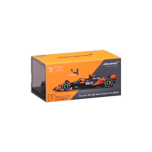 Bburago modely závodních vozů Formule 1 v měřítku1:43 z kolekce RACE jsou sbírkou krásného designu s vysokým důrazem na přesnost detailů. Formule ze stáje McLaren MCL38 (2024) ve speciální Senna Edition s autentickými detaily závodního vozu a helmy jezdce. Modely jsou vyrobeny z litého kovu s plastovými detaily. Každý z modelů v klasickém závodním designu je umístěn v dekorativním akrylovém boxu. Díky dekorativnímu boxu je tento model skvělým sběratelským kouskem a dárkem pro každou příležitost. Nevhodné pro děti do 3 let. Rozměry balení: 6,7 x 14,7 x 7,5 cm. Věk: 14+