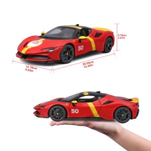 Modely automobilů Ferrari v měřítku 1:18 z kolekce RACE+PLAY jsou sbírkou krásného designu s vysokým důrazem na přesnost detailů. Detailní provedení motorových prostor, interiéru, kol a odznaků. Modely jsou vyrobeny z litého kovu s plastovými detaily. Většina modelů z kolekce má otevírací dveře, kufr nebo kapotu. Všechny modely v kolekci mají plně funkční řízení a zavěšení všech kol. Model je namontován na výstavním stojánku. Baleno v krabičce. Nevhodné pro děti do 3 let. Rozměry balení: 12,6 x 33,5 x 16,5 cm. Věk: 3+