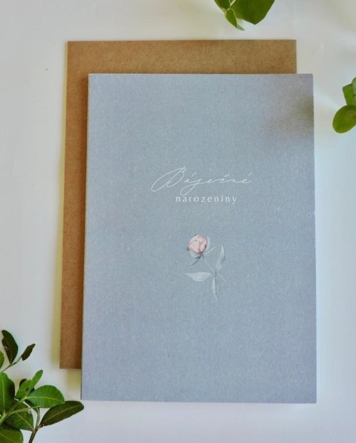 Be Nice ekologické přání "Eukalyptus s pivoňkou Báječné narozeniny" - s originálním designem a textem: Báječné narozeniny. Originální motivy na přání vytvořila česká ilustrátorka Bára z Nikolajky. Rozměr: 12 x 17 cm