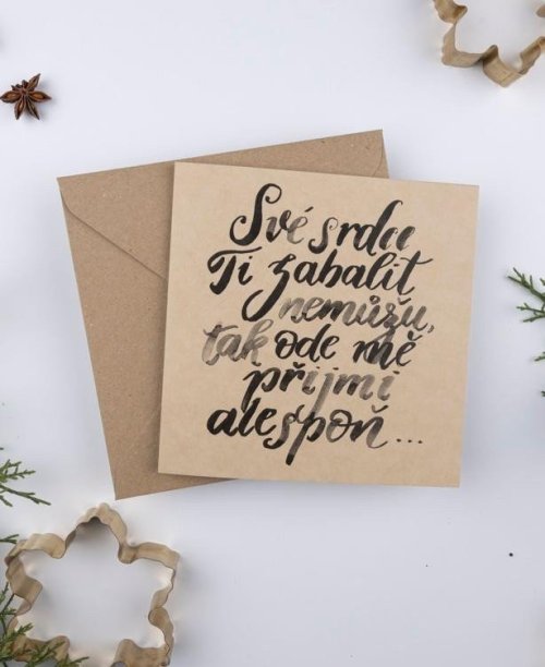 Be Nice EKO vánoční přání z recyklovaného papíru. Srdečné originální přání, kterým uděláte velkou radost. Přání krasopisně nadepsala česká výtvarnice Bára z Nikolajky. Uvnitř přání bez textu. Rozměr: 15,5 x 15,5 cm