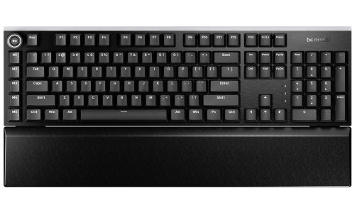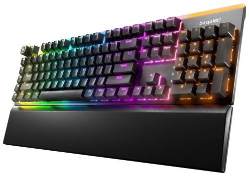 Klávesnice s tichými lineárními mechanickými spínači be quiet! s továrním mazáním a podporou výměny za provozu. Nabízí třívrstvé zvukové tlumení, hliníkové tělo, dvojité PBT klávesy s prosvítajícími popisy a podsvícení každé klávesy pomocí ARGB difuzorů.