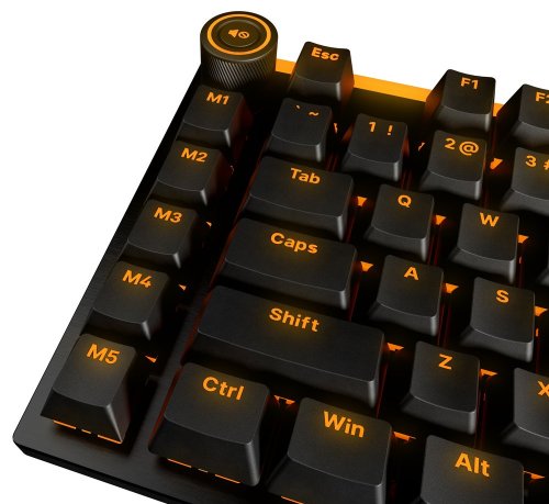 Součástí klávesnice je numerický blok pro snadné zadávání číselných znaků i praktické hliníkové 3D kolečko pro ovládání hudby, videí nebo makrokláves. V základním nastavení umožňuje upravit hlasitost nebo vypnout zvuk. Celkem 5 mechanických makrokláves můžete naprogramovat pro další média, nebo jim přiřadit specifickou funkci prodanou hru.