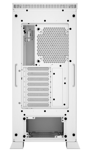 Kvalitní počítačová skříň s průhlednou bočnicí formátu Middle Tower nabízí šest 2,5" pozic pro SSD disky a dvě 3,5" pozice pro pevné disky. Předinstalovány jsou tři 140 mm ventilátory, které lze optimalizovat jak pro tichý chod, tak pro výkon bez kompromisu pomocí dotykových tlačítek na horním panelu. Zde se také nachází čtyři porty USB 3.0, jeden port USB-C, sluchátkový výstup a audio vstup pro mikrofon. Herní design ještě doplňuje elegantní ARGB osvětlení. Ve skříni je dostatek prostoru pro chladič CPU do výšky až 190 mm a grafickou kartu o délce až 370 mm. Důmyslné řešení umožňuje pohodlné umístění až 420 mm dlouhého výměníku vodního chlazení na přední straně. Potěší také přítomnost prachových filtrů. Skříň je dodávána bez zdroje.