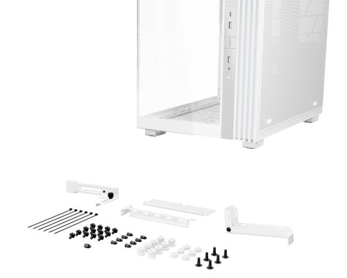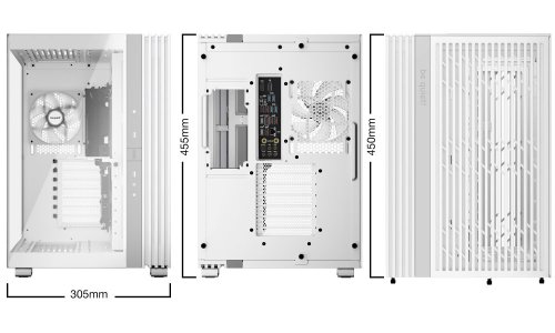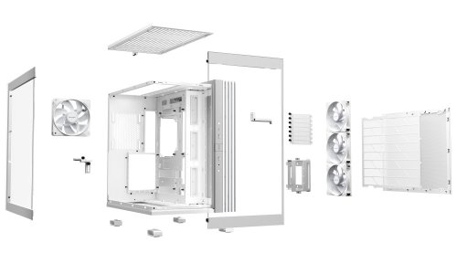 Unikátní počítačová skříň s průhlednou bočnicí i předním panelem formátu Middle Tower nabízí dostatek prostoru pro montáž většiny dostupných komponent. Hlavní předností této skříně je možnost rychlé změny její orientace díky systému odnímatelných a přemístitelných nožiček. Skříň je dodávána se čtyřmi předinstalovanými 120mm ventilátory s ARGB podsvícením. K tomu nabízí dalších až 6 pozic pro ventilátory a dva integrované rozbočovače ventilátorů a ARGB. Na předním panelu se nachází dva porty USB 3.0, jeden port USB-C, sluchátkový výstup a audio vstup pro mikrofon. Herní design ještě doplňuje elegantní ARGB osvětlení lemující strany skříně, díky čemuž je viditelné bez ohledu na to, v jaké orientaci skříň používáte. Ve skříni je dostatek prostoru pro chladič CPU do výšky až 170 mm a grafickou kartu o délce až 400 mm. Důmyslné řešení umožňuje pohodlné umístění až 360 mm dlouhého výměníku vodního chlazení na horní nebo spodní straně. Potěší také přítomnost prachových filtrů či integrovaná podpěra grafické karty. Skříň je dodávána bez zdroje.