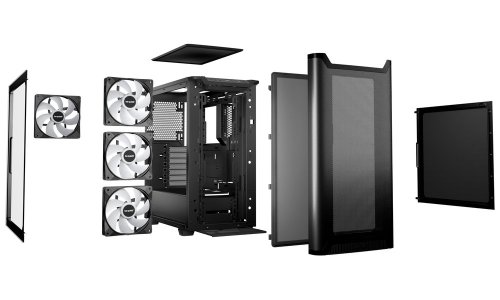 Počítačová skříň Be quiet! PURE BASE 501DX je navržena také s ohledem na tichý provoz. Optimalizované proudění vzduchu přispívá k nízké hladině hluku. O stylový vzhled se postará nejenom celoskleněný boční panel, ale také ARGB osvětlení uvnitř i vně skříně. Samozřejmostí je také bohatá konektivita. Přední panel obsahuje všechny potřebné konektory pro připojení periferií a také tlačítko pro ovládání osvětlení.