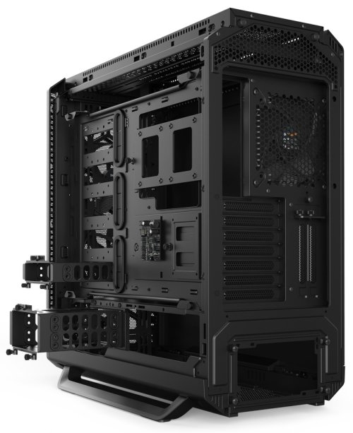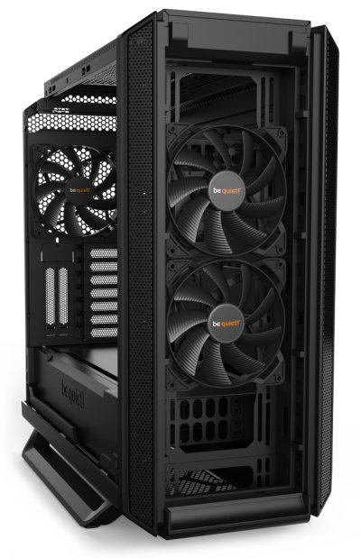 Kvalitní počítačová skříň formátu Middle Tower, která perfektně kombinuje vysoký stupeň modularity s absolutní tichostí. Vybavena je třemi prakticky neslyšitelnými ventilátory, které je možné díky regulátoru přepínat mezi režimy ticha nebo výkonu. Potěší také možnost rozšíření o dalších pět ventilátorů. Na horní straně se nachází dva USB 3.0 porty, jeden USB 2.0 port, sluchátkový výstup a vstup pro mikrofon. Podporuje montáž základních desek E-ATX, ATX, M-ATX a MINI-ITX. Pro disky pak slouží tři 3,5" pozice nebo až sedm 2,5" pozic. Důmyslné řešení umožňuje pohodlné umístění až 420 mm dlouhého výměníku vodního chlazení na přední straně. Skříň je dodávána bez zdroje.
