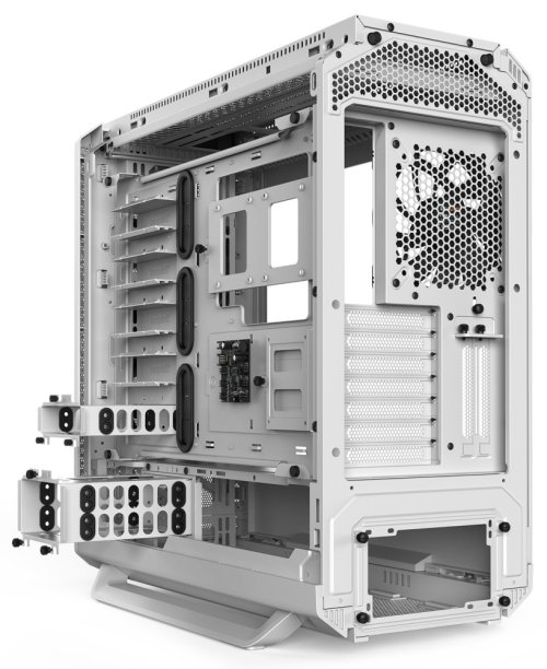 Kvalitní počítačová skříň formátu Middle Tower, která na první pohled zaujme průhlednou bočnicí. Perfektně kombinuje vysoký stupeň modularity s absolutní tichostí. Vybavena je třemi prakticky neslyšitelnými ventilátory, které je možné díky regulátoru přepínat mezi režimy ticha nebo výkonu. Potěší také možnost rozšíření o dalších pět ventilátorů. Na horní straně se nachází dva USB 3.0 porty, jeden USB 2.0 port, sluchátkový výstup a vstup pro mikrofon. Podporuje montáž základních desek E-ATX, ATX, M-ATX a MINI-ITX. Pro disky pak slouží tři 3,5" pozice nebo až sedm 2,5" pozic. Důmyslné řešení umožňuje pohodlné umístění až 420 mm dlouhého výměníku vodního chlazení na přední straně. Skříň je dodávána bez zdroje.