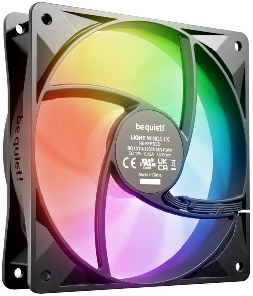 Výkonný ventilátor Be quiet! Light Wings LX PWM Reverse 120 mm s unikátním designem lopatek, který se postará o efektivní chlazení v rámci moderních PC sestav. Reverzní lopatky ventilátoru zajistí vysoký tlak vzduchu, což vede také k lepšímu výkonu a optimálnímu proudění.