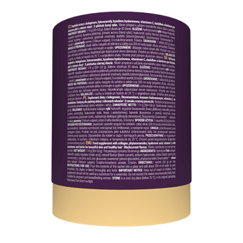 Beauty Complex Collagen – Černý rybíz je speciálně vyvinutý prémiový doplněk stravy pro komplexní péči o krásu – s rybím kolagenem a fytoceramidy, kyselinou hyaluronovou, vitaminem C, sladidlem a biotinem pro krásnou pleť a zdravé vlasy. To vše v lahodné příchuti černého rybízu.
