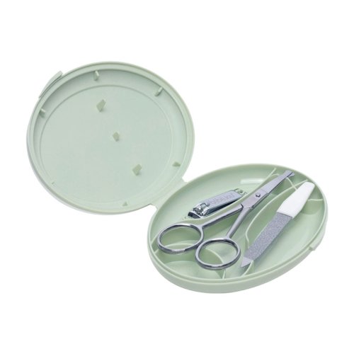 Obsahuje nůžky se zakulacenými konci, pilníček na nehty a také kleštičky na nehty. Vše je vyrobeno z nerezavějící ušlechtilé oceli. Krabička s výrazným motivem na víčku chrání před prachem a pomáhá udržovat manikúru v čistotě. Ale i přesto před každým použitím jednotlivé nástroje pečlivě očistěte a u novorozenců i desinfikujte roztokem lihu.