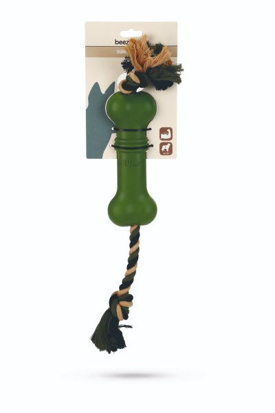 Beeztees Sumo Fit Bone je extra odolná hračka pro psy vyrobená z přírodního kaučuku. Výborně se hodí jak na aportování, tak přetahování. Společnou hrou prohloubíte vzájemný respekt mezi Vámi a Vaším psím mazlíčkem, posílíte důvěru a podpoříte vzájemnou spolupráci. Provaz zaručuje snadnější uchopení hračky a při hře čistí Vašemu pejskovi zuby.