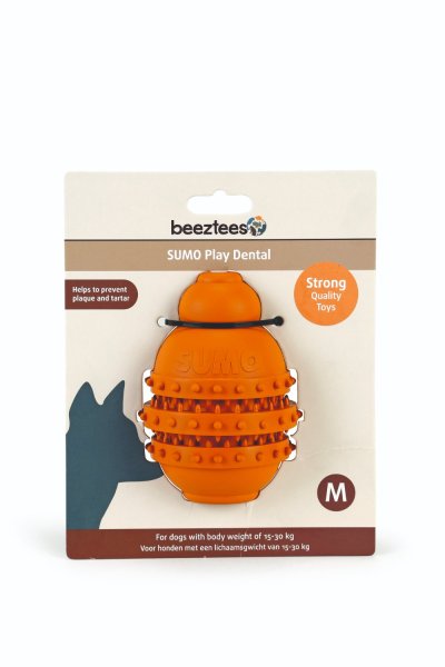 V otvoru ve spodní části Sumo Play Dental můžete schovat chutný pamlsek a Váš pejsek se bude snažit ze všech sil, aby se k němu dostal, což je skvělý způsob, jak zabránit tomu, aby trpěl nudou. Je to ideální hračka, se kterou si Váš mazlíček může hrát nejen, když je sám. Je opatřena drážkami, které podporují péči o zuby, žebrovaný povrch masíruje dásně a pomáhá proti zubnímu kameni a plaku. Praktickou výhodou je možnost mytí v myčce nádobí. Zelená barva. Velikost: 9 x 9 x 12 cm, vhodná pro psy o hmotnosti cca 15-30 kg
