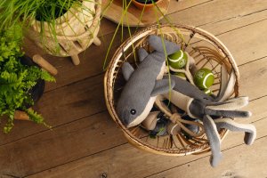 Hračka je vyrobena z polar fleecu Ocean REPREVE: 70 % polyester a 30 % polyester Ocean REPREVE. REPREVE je přední a nejdůvěryhodnější vlákno vyrobené z recyklovaných materiálů. REPREVE Our Ocean je recyklovaný materiál vyrobený z lahví sesbíraných v okruhu 50 km od pobřeží, v zemích nebo oblastech bez formálních systémů odpadu a/nebo recyklace. S touto hračkou nejen že uděláte radost svému psovi, ale také přispějete svou troškou k udržitelnosti.