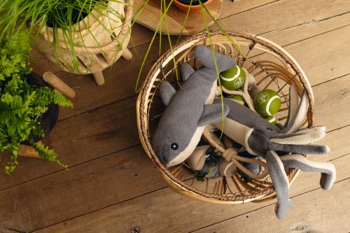 Hračka je vyrobena z polar fleecu Ocean REPREVE: 70 % polyester a 30 % polyester Ocean REPREVE. REPREVE je přední a nejdůvěryhodnější vlákno vyrobené z recyklovaných materiálů. REPREVE Our Ocean je recyklovaný materiál vyrobený z lahví sesbíraných v okruhu 50 km od pobřeží, v zemích nebo oblastech bez formálních systémů odpadu a/nebo recyklace. S touto hračkou nejen že uděláte radost svému psovi, ale také přispějete svou troškou k udržitelnosti.