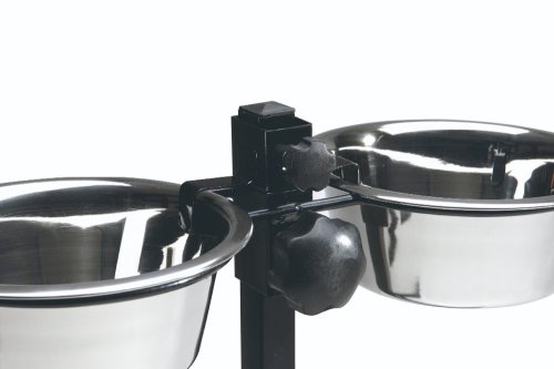 Hledáte způsob, jak mít misku na krmivo a misku na vodu pro Vašeho pejska na jednom místě? Pak je právě pro Vás ideální tento stojan Beeztees na dvě misky. Tyto misky z nerezové oceli mají kvalitní lesklý povrch, který jim dodává stylovější vzhled. Stojan má navíc na spodní straně gumové protiskluzové krytky, které zabraňují klouzání a chrání Vaši podlahu před poškrábáním. Misky z nerezové oceli lze mýt v myčce. Kovový rám černé barvy, výškově stavitelný 2 misky z nerezové oceli. Protiskluzový. Misky je možno nastavit do výšky v rozmezí 7,5cm až 25cm. Misky z nerezové oceli vhodné do myčky. Průměr misky 16 cm. Objem: 2 x 810 ml.