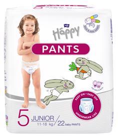 Natahovací plenkové kalhotky Bella Happy Pants Junior jsou určeny dětem o hmotnosti 11 – 18 kg a jsou novinkou v sortimentu značky Bella Baby Happy.