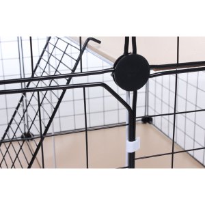 Merco Bella ohrádka pro zvířátka poskytuje vašim menším domácím mazlíčkům přehledný a dobře členěný prostor, kde mohou pohodlně odpočívat i aktivně se pohybovat. Díky dvoupodlažní konstrukci, rampě a přístupovým dvířkům má zvíře více prostoru a může přirozeně využívat výšku i členění ohrádky. Celá ohrádka je určena pro použití ve vnitřním prostředí a je sestavena v konfiguraci z fotografie, tedy se spodní otevřenou sekcí, rampou a horním patrem. Konstrukci tvoří lakované mřížkové panely v černé barvě, které se jednoduše spojují pomocí stabilních plastových konektorů. Toto umožňuje pevné sestavení bez použití nářadí. Na podlážku a patro jsou použity panely s výplní z plastové fólie, které se snadno udržují. Dvířka ve spodní i horní části ohrádky umožňují pohodlný přístup k mazlíčkovi. Upozornění na velikost ok v mřížkových panelech klece: Ohrádka má mřížková oka o velikosti 4 × 4 cm. Před nákupem prosím ověřte, že tělo ani hlava vašeho zvířete nejsou menší než tato mezera. Menší nebo štíhlejší zvířata by mohla: - projít skrz otvor, - uvíznout v mříži, - případně se poranit. Ohrádka je vhodná pouze pro větší drobná zvířata, u kterých nehrozí proklouznutí mezerou. Ohrádku Merco Bella sestavíte snadno a rychle podle podle přiloženého návodu vpravo vedle popisu produktu. Rozměr vzorové sestavy ve fotogalerii s využitím všech dílů: Délka x šířka x výška: 74 x 74 x 72 cm Obsah balení: - 18 x mřížkový panel, rozměr: 35 x 35 cm (velikost jednoho oka mříže je 4 x 4 cm) - 2 x mřížková dvířka 35 x 35 cm - 6 x panel s výplní z plastové fólie 35 x 35 cm - 2 x rámeček 35 x 35 cm (bílá barva) - 1 x mřížková rampa pro přístup do patra 42 x 16 cm - 28 x plastová spojka s průměrem 3,5 cm - 4 x plastová západka dvířek - sada plastových stahovacích pásků - 1 x dřevěné kladívko Materiál: - ocelový drát (jednotlivé panely) - plast (spojky, zarážky, stahovací pásky) - plastová fólie (výplň plných panelů)