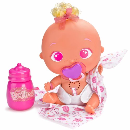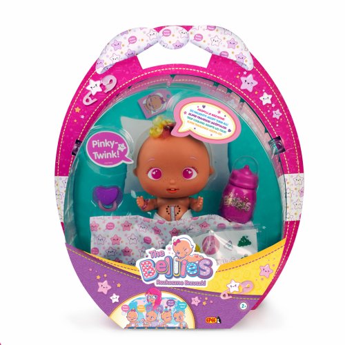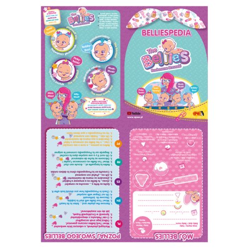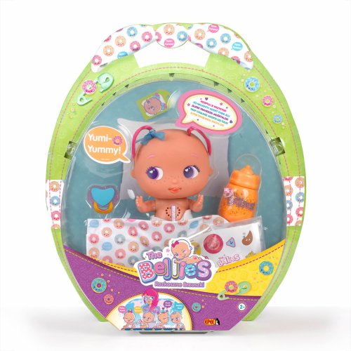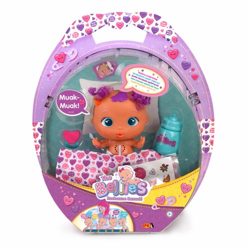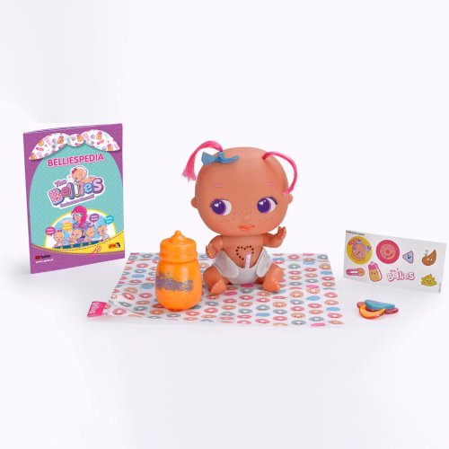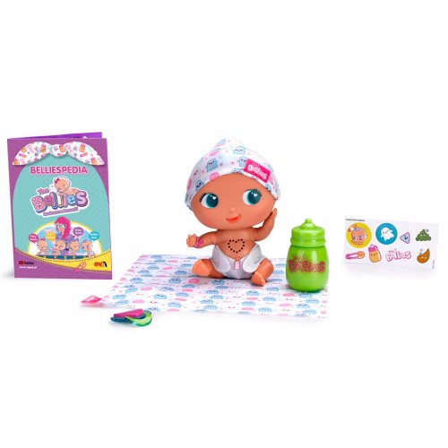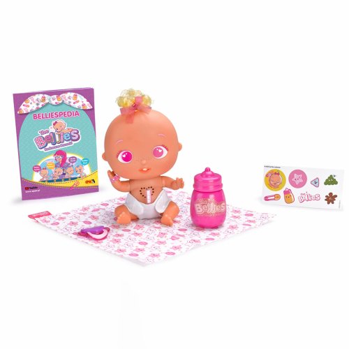 Roztomilá miminka Bellies hledají nový domov. Interaktivní miminka žvatlají a bije jim srdíčko. Každé má unikátní mateřské znaménko. Součástí balení je spousta doplňků, které ti pomůžou s péčí o miminko. Adaptuj jedno nebo třeba všechny! Obsah balení: panenka, kojenecká láhev, dudlík, deka s potiskem, sada samolepek, adopční listina. Assort 4: Pinky-Twink, Yumi-Yummy, Muak-Muak, Bobby-Boo. Pro děti od 2 let.