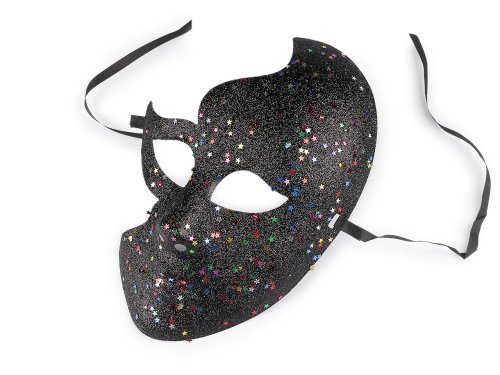 Benátskou masku využijete na různé večírky, plesy, párty, karnevaly i divadelní představení. Přidá mystiku vašemu vzhledu. Celá je pokrytá třpytivými glitry a drobnými flitry ve tvaru hvězd.