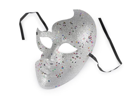 Benátskou masku využijete na různé večírky, plesy, párty, karnevaly i divadelní představení. Přidá mystiku vašemu vzhledu. Celá je pokrytá třpytivými glitry a drobnými flitry ve tvaru hvězd.