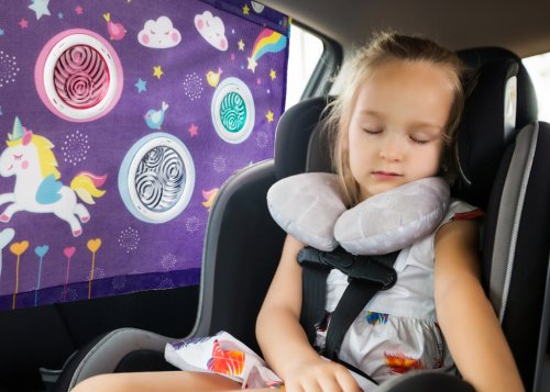 Sluneční clona do auta byla speciálně navržena tak, aby vytvořila barevné prostředí a zaujala vaše dítě na cestách. Přirozené denní světlo vytváří fascinující textury prostřednictvím barevných bublin, které vizuálně stimulují smysly vašeho dítěte. Přestože síťový materiál chrání vaše dítě před sluncem, filtruje světlo, aniž by omezoval výhled, což umožňuje maximální bezpečnost. Nezbytný výrobek pro zábavnou a veselou jízdu.
