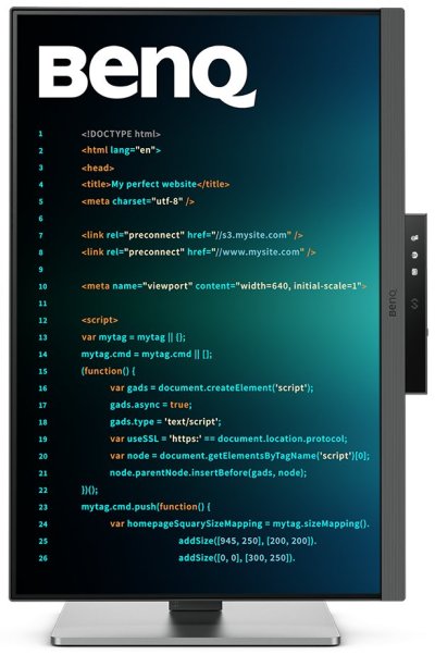Monitor BenQ RD240Q pro programátory, kodéry a další pracovníky v IT sféře. Nabízí pokročilé režimy pro psaní kódů, lepší viditelnost a orientaci na každém řádku. Displej obsahuje speciální úpravu, která zamezuje odleskům a zajišťuje perfektní čtení kódů. Rozlišení WQXGA zobrazí obsah jasně a ostře, takže zřetelně rozeznáte každý znak.