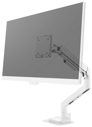 Systém je kompatibilní s VESA standardy 75 × 75 mm a 100 × 100 mm a obsahuje ochranné ocelové výztužné desky, které chrání tenké, skleněné a křehké stolní desky před poškrábáním a deformací. Integrovaný kabelový management udržuje pracovní prostor v pořádku.