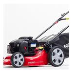 Měkčené a ergonomicky tvarované rukojeti si můžete nastavit dle potřeby, což zaručuje pohodlí při práci. Díky velkým kolům s kuličkovými ložisky, která snižují valivý odpor, se vám bude se sekačkou dobře manévrovat.