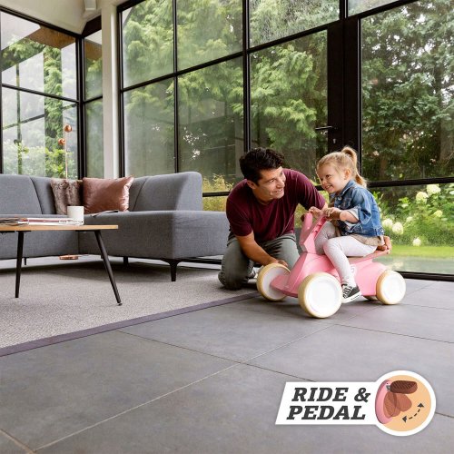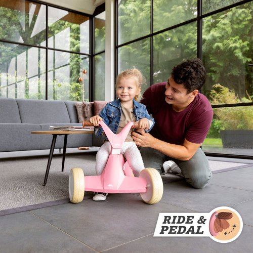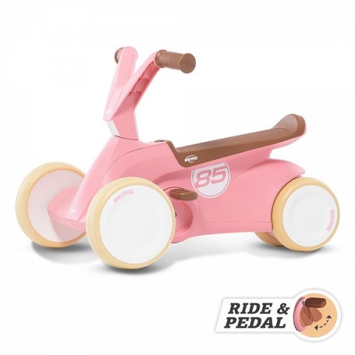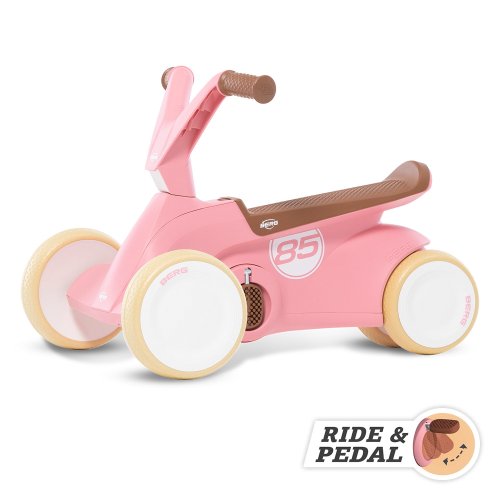 Jízda na BERG GO Retro 2v1 je díky ergonomickému designu vždy bezpečná. Sedadlo je vymyšleno tak, že se menší i větší děti, mohou vždy pohodlně usadit, aniž by jim nohy dotýkaly volantu. Tvar sedadla zabraňuje sklouznutí dítěte z odrážedla. Díky čtyřem tichým pneumatikám EVA zůstává odstrkovalo/šlapadlo vždy pevně na zemi. Jakmile si dítě osvojí jízdu na odrážedle a naučí se stabilitě, může se začít pomalu učit šlapat pomocí sklopných pedálů. Poutavý retro vzhled v barevné kombinaci růžové a hnědé upoutá na první pohled. BERG GO Retro odrážedlo/šlapadlo je tou nejlepší volbou, pomáhá při rozvoji vašeho dítěte. Vhodné pro děti od 70 - 100 cm. Maximální nosnost: 20 kg. Hmotnost: 3,85 kg. Odstrkovalo/Šlapadlo vj vhodné pro děti od 10 měsíců do 2,5 let. Video: https://www.youtube.com/watch?v=sl4xZYXfFB0