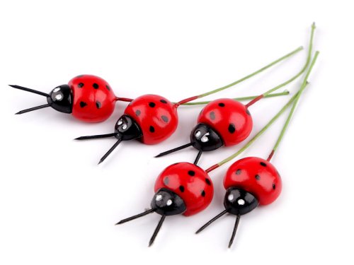 Dekorační berušky jsou připevněné k ohebnému floristickému drátku. Vyniknou zakomponované v květinových vazbách, aranžmá, věncích, truhlících, květináčích apod.