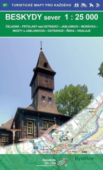Čeladná - Frýdlant nad Ostravicí - Jablunkov - Morávka - Mosty u Jablunkova - Ostravice - Řeka - VisalajeTuristická a cykloturistická mapa. Zimní turistická nadstavba.Podrobná mapa v měřítku 1:25 000, 1 cm na mapě = 250 m ve skutečnosti. Vydání květen 2017Všeobecná charakteristika map od Geodézie On Line, spol. s r.o. Podrobná mapa zobrazuje základní polohopisné a výškopisné informace např. silnice, zpevněné a nezpevněné cesty,železnici, sídla a jejich části včetně osad a samot, vodní plochy a toky, ostatní plochy (např. lesy, zahrady a sady, vinice, chmelnice), výškové kóty, vrstevnice po 10 m, ... Obsahuje pásové a místní turistické značení, turistické směrovníky, kilometráž; cykloturistické trasy; naučné stezky; turistické lyžařské trasy, sjezdové tratě, lanovky a vleky (jsou-li v zobrazovaném území); jezdecké trasy a samozřejmě zobrazuje pro turisty atraktivní místa - hrady a zámky, rozhledny a místa rozhledu, zříceniny a jiné památky, muzea a galerie, koupaliště, vybrané restaurace a ubytovací zařízení,... Mapu dodáváme složenou v praktickém plastovém obalu.