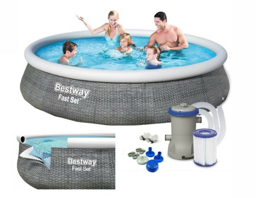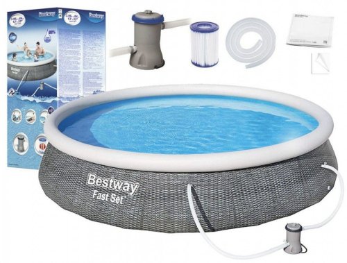 Bestway® Kruhový bazén Ø 396 x 84 cm s kartušovou filtrací z kolekce bazénů Fast Set. Rychlá a jednoduchá montáž – stačí si vybrat rovnou plochu, nafouknout horní prstenec, napustit bazén vodou a během chvilky se budete koupat. Sada obsahuje filtrační čerpadlo a filtrační vložku, která udržuje vodu čerstvou a čistou. Dodává se také s vypouštěcím ventilem pro regulaci průtoku, který umožňuje rychlé vypuštění na konci sezóny. Pro Bestway Fast Set Pool nejsou potřeba žádné nářadí. Tyto bazény se snadno sestavují a konstruují z odolných materiálů a zajišťují, že letní zábava bude trvat celou sezónu. TRITECH® Bazénová vložka z robustního, 3vrstvého materiálu. Tento 3vrstvý pevný materiál kombinuje PVC a síťovinu a vytváří odolný materiál, který je vyztužený pro pevnost a odolnost proti propíchnut. Snadné sestavení – jednoduše vybalte, postavte, nafoukněte a naplňte. Obsah sady: 1 bazén, 1 filtrační čerpadlo (220-240 V) s kompatibilní kazetou 58094, 1 záplata na opravu pod hladinou vody. Rozměry bazénu: Ø 396 x 84 cm. Maximální kapacita vody (80 %): 7340 litrů. Použití pro děti vždy pod dozorem dospělé osoby. Rozměry balení: 76 x 31 x 31 cm