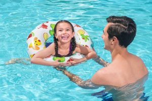 s plavacím kruhem získávají děti jistotu a odvahu, pobyt ve vodě pro ně bude zábavný a zároveň i bezpečný, lehký a skladný.