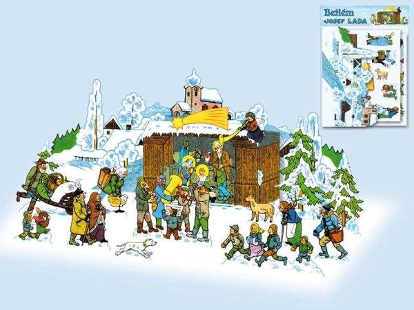 Vysekávaný, jednoduše sestavitelný betlém LADA, bez použití lepidla a nůžek. Legendární ilustrace od Josefa Lady v podobě krásného betlému, který oživí Váši místnost a naladí Vám doma vánoční atmosféru. Najdete zde kreslené postavičky Josefa Lady, stačí je pouze vytlačit z podložky a poté sestavit do finální podoby. Betlém je vyrobený z 2 mm silné lepenky.