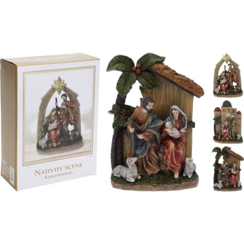 Dekorativní betlém vyrobený z polyresinu, ideální pro vánoční výzdobu. Každý kus je detailně propracovaný a nabízí originální design.