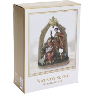 Dekorativní betlém vyrobený z polyresinu, ideální pro vánoční výzdobu. Každý kus je detailně propracovaný a nabízí originální design.
