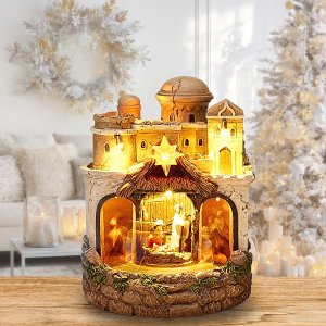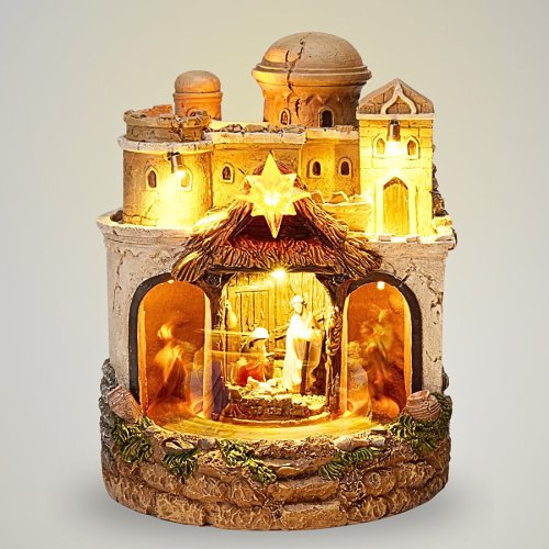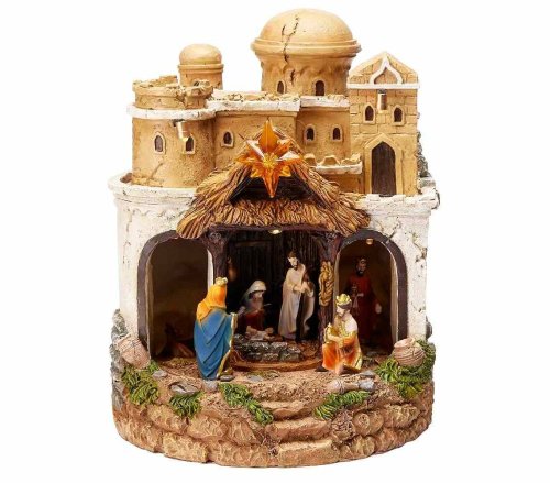 Tento polyresinový betlém přináší kouzelnou vánoční atmosféru díky LED světlu, hudbě a pohyblivé kulise. Ideální dekorace pro stůl, poličku nebo komodu, která potěší děti i dospělé.