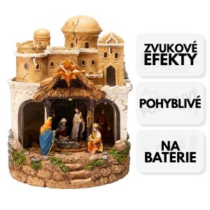 Betlém s LED osvětlením, hudbou a otočnou kulisou