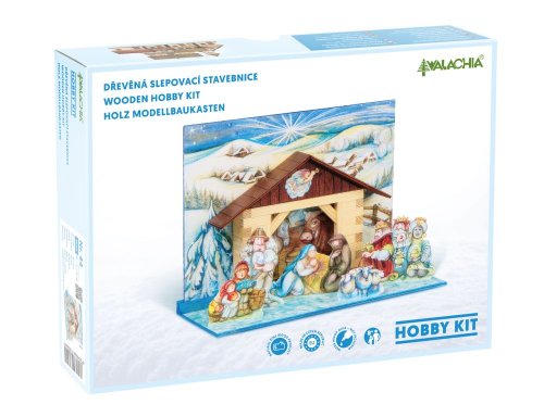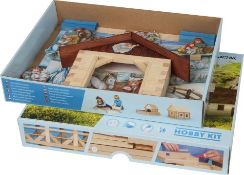 Dřevěná slepovací stavebnice obsahuje dřevěné hranolky daných délek ke stavbě roubených stěn, díly na střechy a štíty, kartonové výseky oken a dveří i předtištěné papírové potisky. Součástí stavebnice je schematický montážní plán. Po slepení můžete rozložit na dvě části a uschovat zpět do původní krabice.