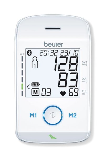 Tlakoměr Beurer BM 85 navíc komunikuje přes Bluetooth s aplikací ve vašem telefonu Sledování tlaku se tak stává součástí moderní digitální péče o zdraví – přehledně, kdykoliv a kdekoliv Lékaři ocení i možnost exportu výsledků přímo z aplikace