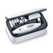 Beurer MP 41 sada pro manikúru a pedikúru je praktický pomocník pro každého, kdo touží po krásných a zdravě vypadajících nehtech přímo z pohodlí domova Tato sada na manikúru pedikúru Beurer je ideální volbou jak pro začátečníky, tak pro všechny, kteří chtějí mít nehty upravené jako ze salónu Díky safírovým nástavcům na nehty nabízí tato sada přesnou a šetrnou úpravu nehtů a pokožky, aniž by docházelo k jejich poškození Manikúra doma nebyla nikdy jednodušší ani dostupnější